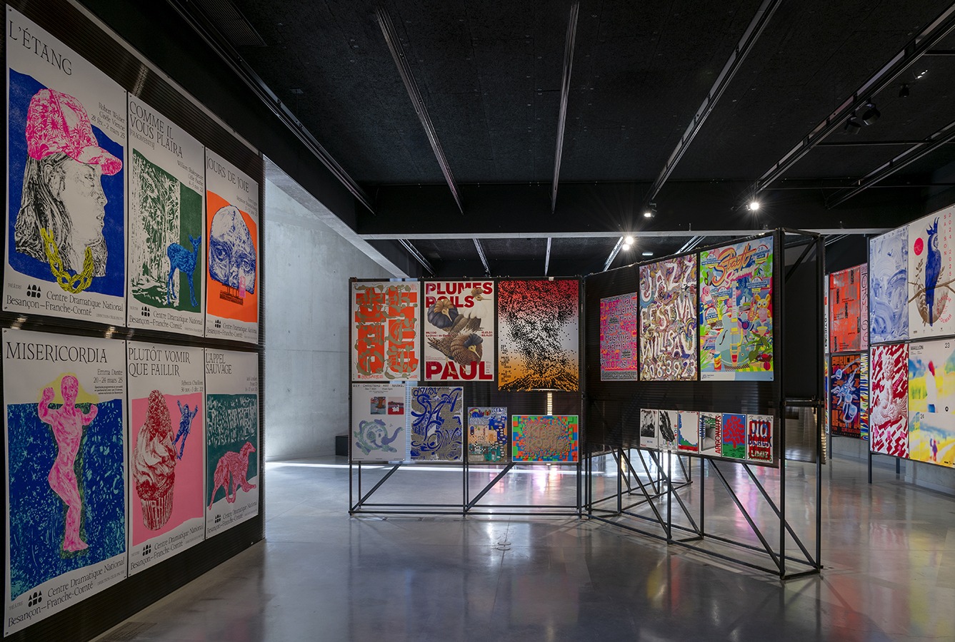 31 ème Concours international de l’affiche 2025 31 ème Concours international de l’affiche, Le Signe, Chaumont, 2025. Acier, mdf teinté dans la masse, Polycarbonate alvéolaire bronze, 432 m². © photographies – Marc Domage